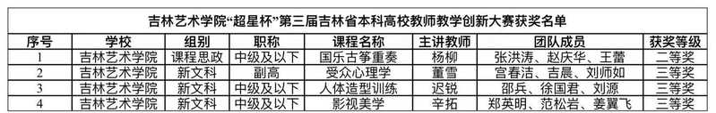 吉林艺术学院关于“超星杯”第五届吉林省高校教师教学创新大赛(校赛)获奖名单公示