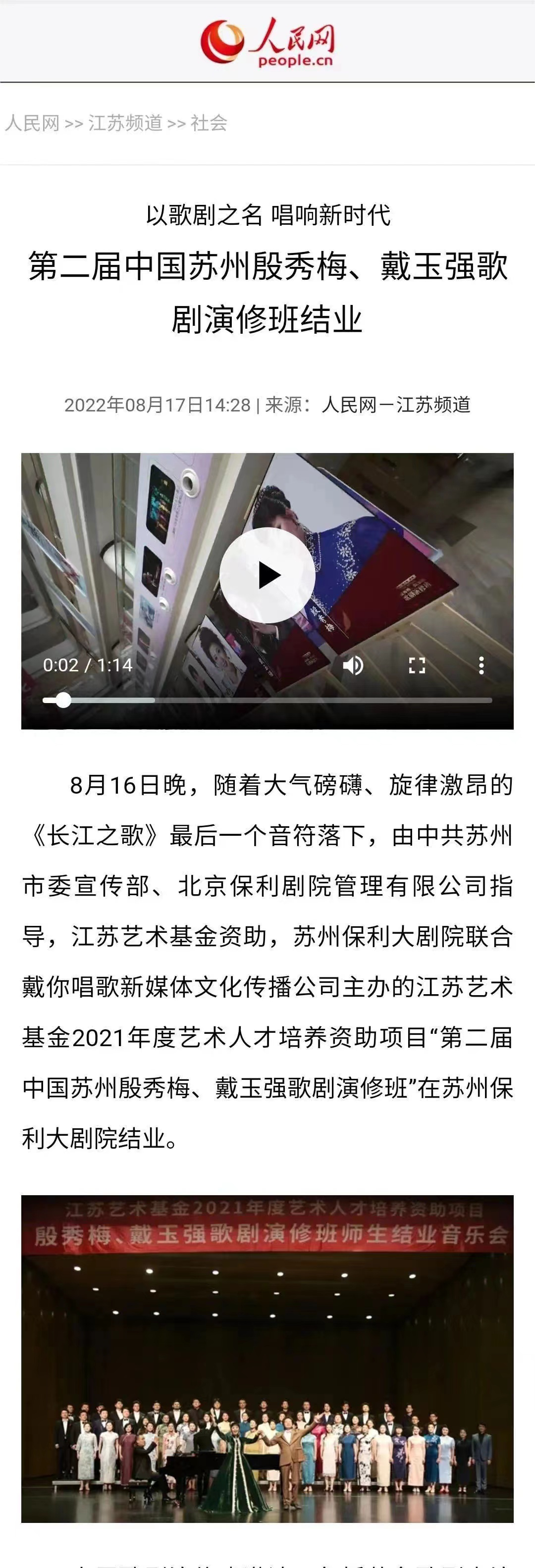 2022年8月1日至2日,由教师教学发展中心资助,艺术教育学院赵冰冰、王黎参加由江苏艺术基金2021年度艺术人才培养资助项目戴玉强、殷秀梅歌剧演修班。该演修班旨在不断推进中国优质艺术资源深度融入江苏,以“名师名家”带动优秀青年艺术人才,进一步推动歌剧艺术普及和专业水平提升,促进青年歌剧人才与全国相关领域人才间学习与交流,为中国民族歌剧发展培养和储备人才。