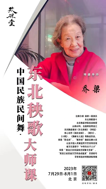 2023年7月29日-8月1日,欢课堂舞蹈文化传播(深圳)有限公司在北京举办了为期四天的中国民族民间舞·东北秧歌大师课,该课程主要由国家一级演员、东北秧歌泰斗乔梁亲身指导教学。经学校教师发展中心和舞蹈学院领导批准,参加了此次宝贵的学习机会。重点学习了东北秧歌元素训练:原地屈伸、踢步训练动律训练(上下动律、划圆动律切身动律、闪身动律)、手绢花位置;单一动作训练:行进前踢步小交替花、肩前花、旁闪身、行进前踢步交叉花;组合训练:手绢花组合、踢步组合、月牙五更组合慢板、单掏花组合、抗肩花组合、大姑娘美组合等。