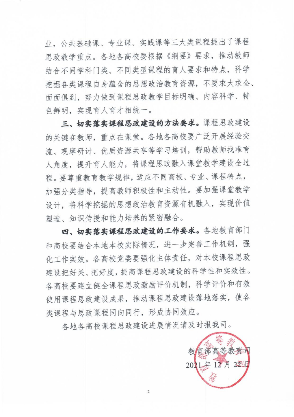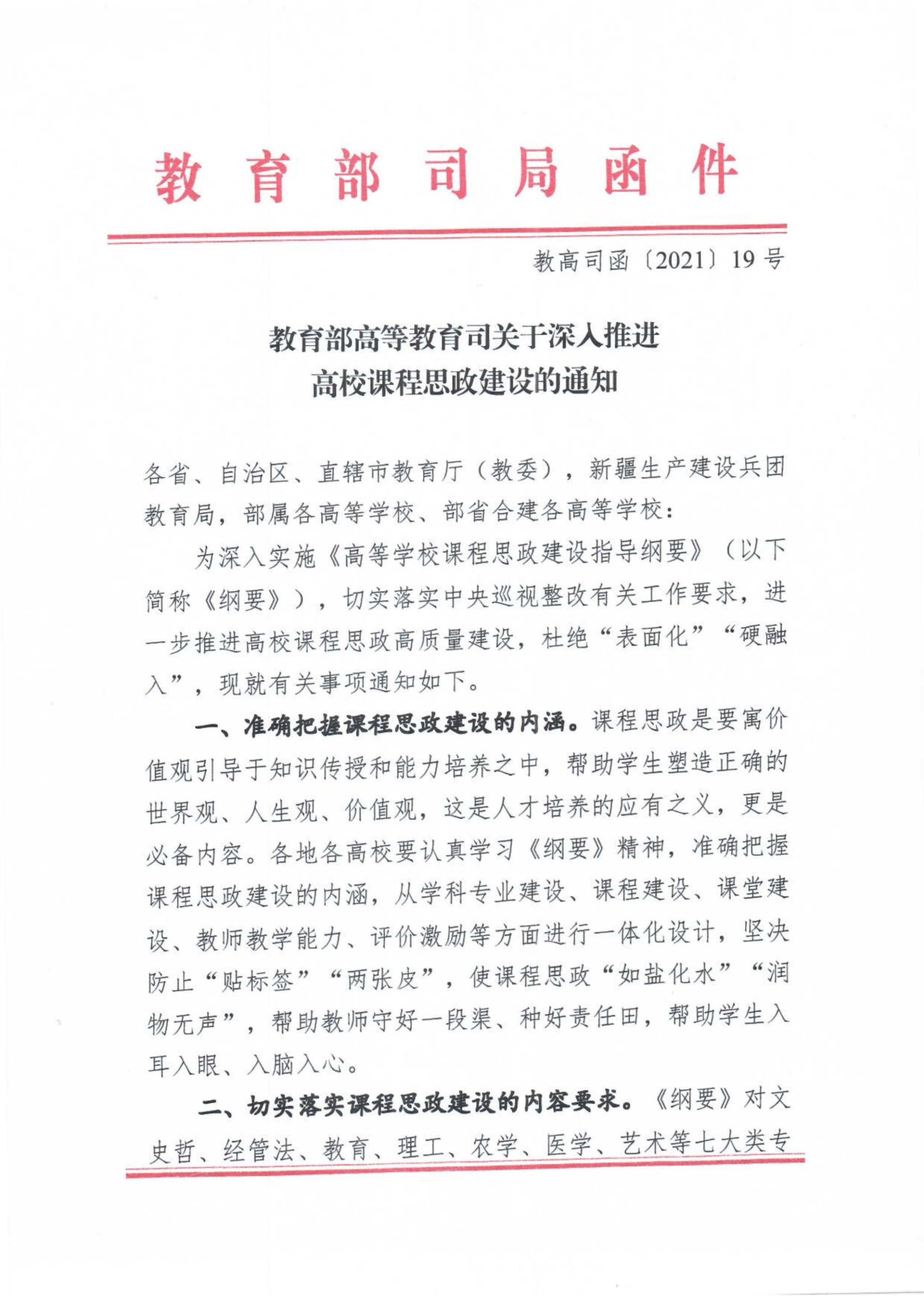 教育部高等教育司关于深入推进高校课程思政建设的通知
